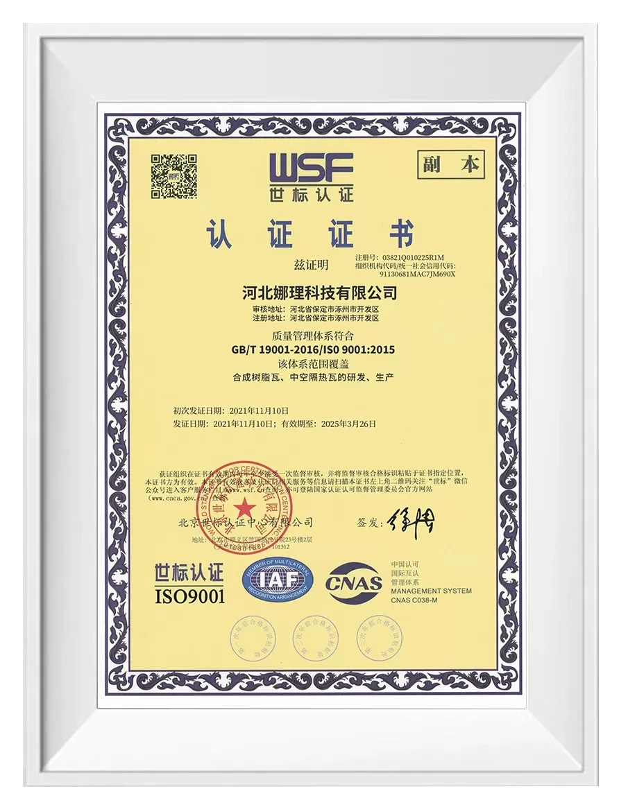 ASA Upvc roof sheet have received China’s Environmental Labeling Product Certification. At the end of their service life, the tiles can be fully recycled, contributing to environmental sustainability.